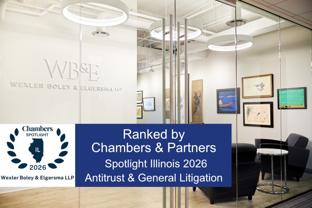 WBE is proud to announce the firm has been ranked for the second year by Chambers & Partners in their Spotlight Illinois guide. WBE was recognized for our work in General Litigation, and is one of only three Chicago firms selected in the category of Antitrust Litigation. We’re honored to be recognized alongside our peers, and would like to thank our clients and colleagues for your trust and support.